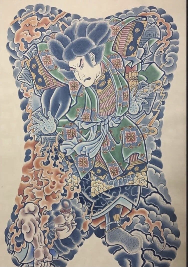 老传统宫本武藏满背纹身手稿分享!云雾山石水浪枫叶! #日式老 - 抖音