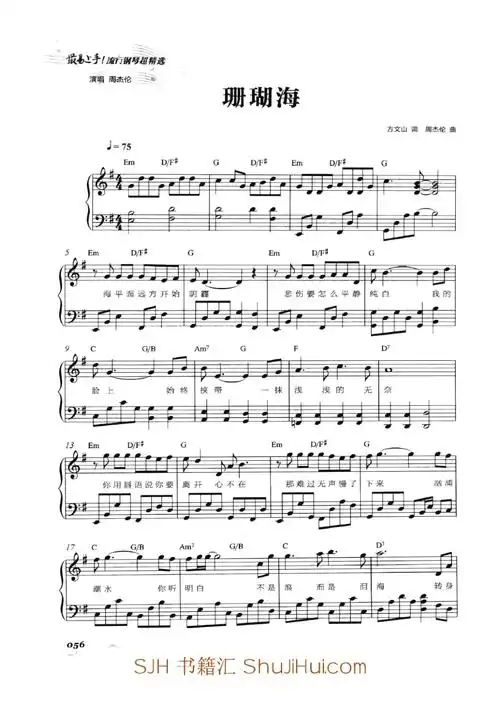 珊瑚海周杰伦原版五线谱钢琴谱正谱乐谱docx