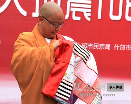 素全法师身穿108罗汉娃衣服缝制的百衲衣#512