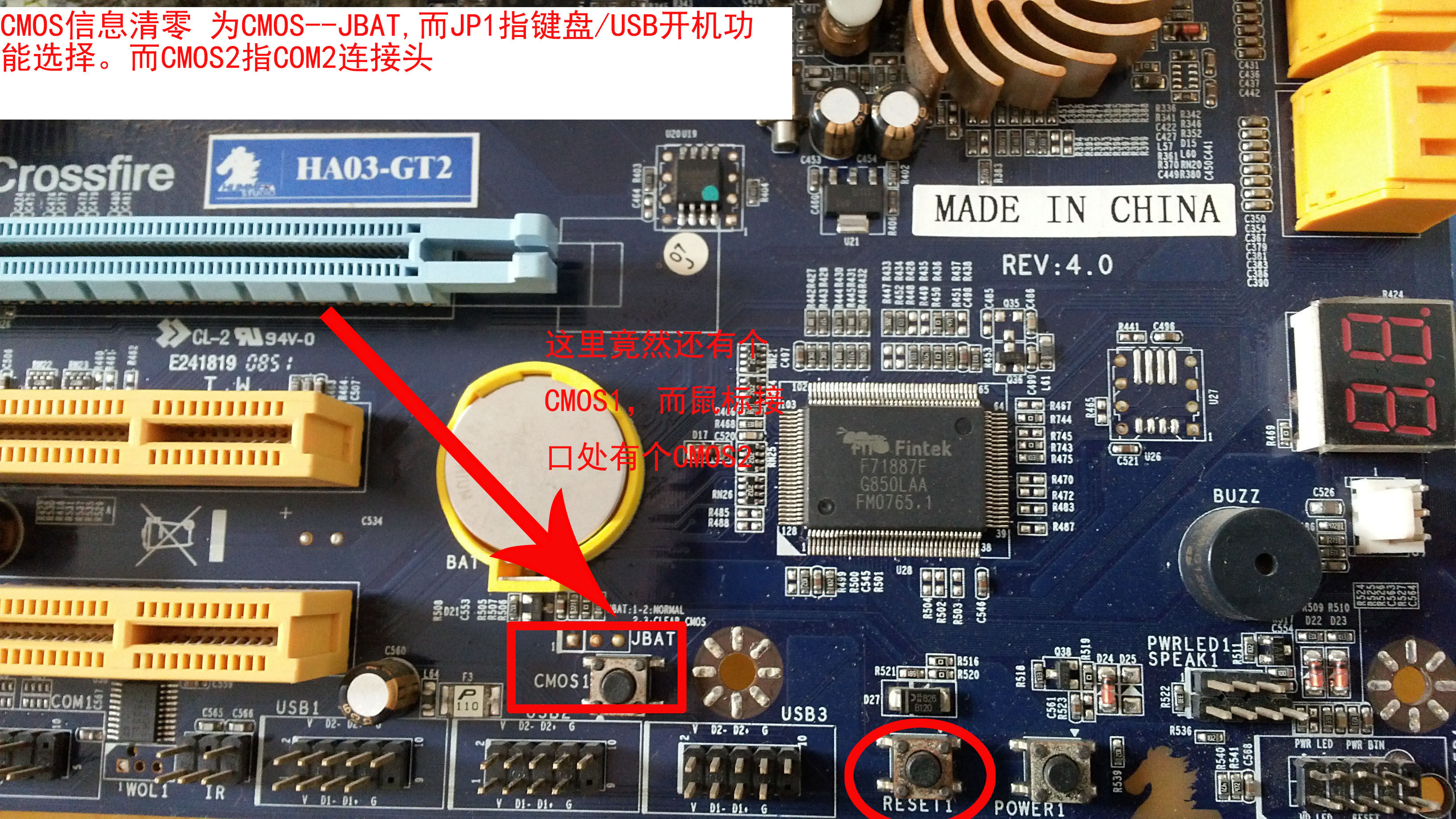 一下恢复主板出厂设置的方法有两种,一是扣电池,二是主板cmos跳线短接