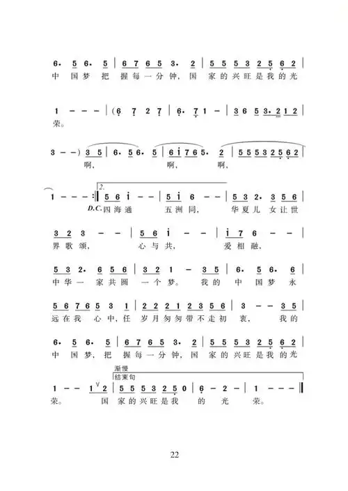 歌曲我们的中国梦简谱