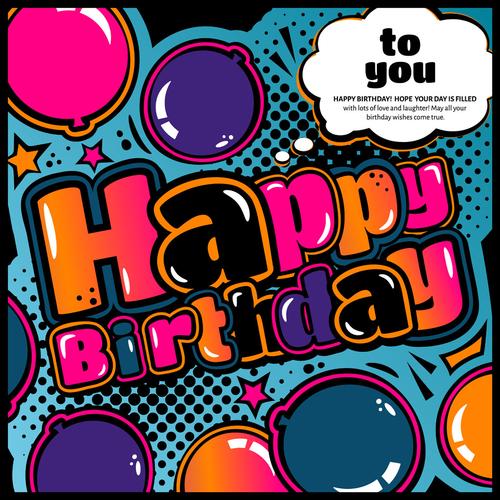 卡通气球生日快乐艺术字半调图案生日贺卡happybirthday生日主