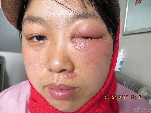 【请教】大家看看是带状疱疹还是单纯疱疹?