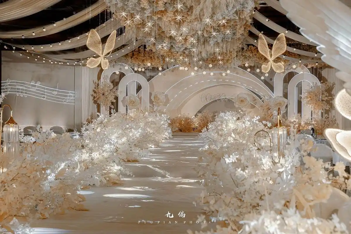 香槟色婚礼布置现场 全吊顶设计 浪漫还原100%新人直呼现场比效果图