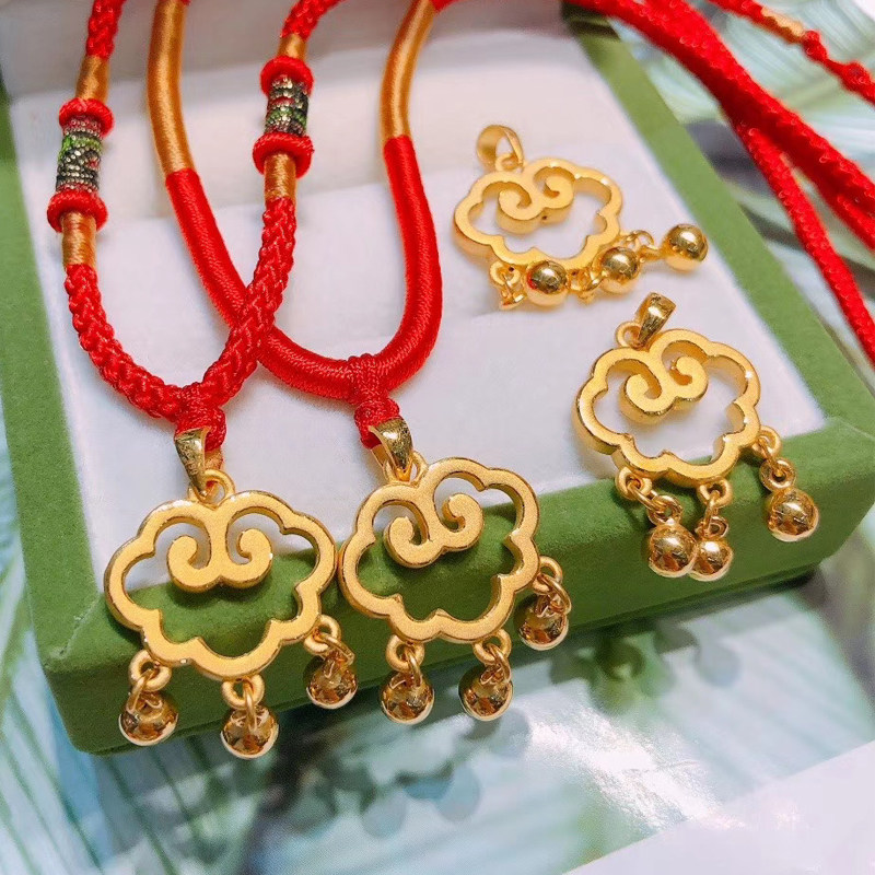 祥云如意吊坠黄金长命大人平安项链红绳编织颈饰
