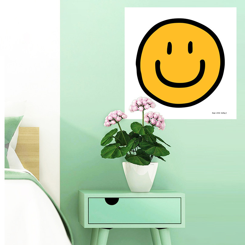 smile 韩国设计 ins风可爱黄色笑脸自粘贴画客厅装饰海报拍照背景