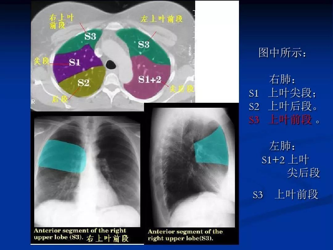 三,左右肺叶各段在胸片及相应ct图像上的分布图解从胸廓,纵隔,膈肌至