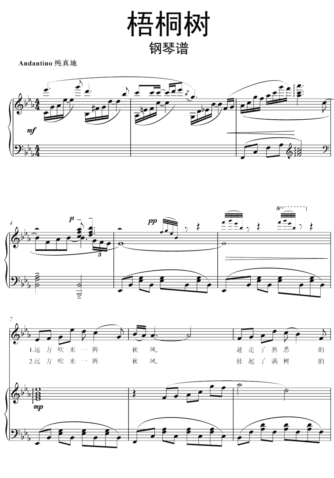 梧桐树_钢琴谱_中国乐谱网唯一官网