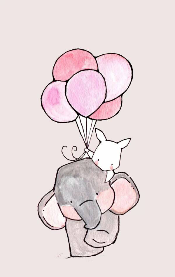 治愈系手绘插画:一只小象和一只小白兔,有时友谊就是这么简单.