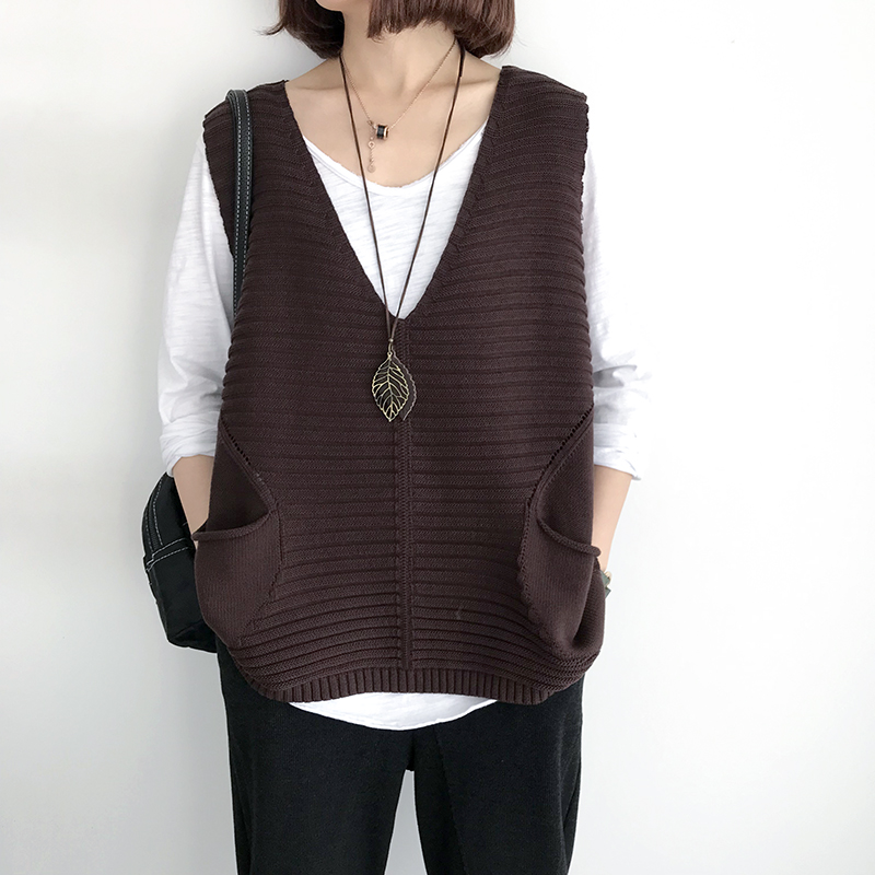 针织马甲女春秋新款宽松大码外穿背心领无袖上衣坎肩无袖外套潮 黑色