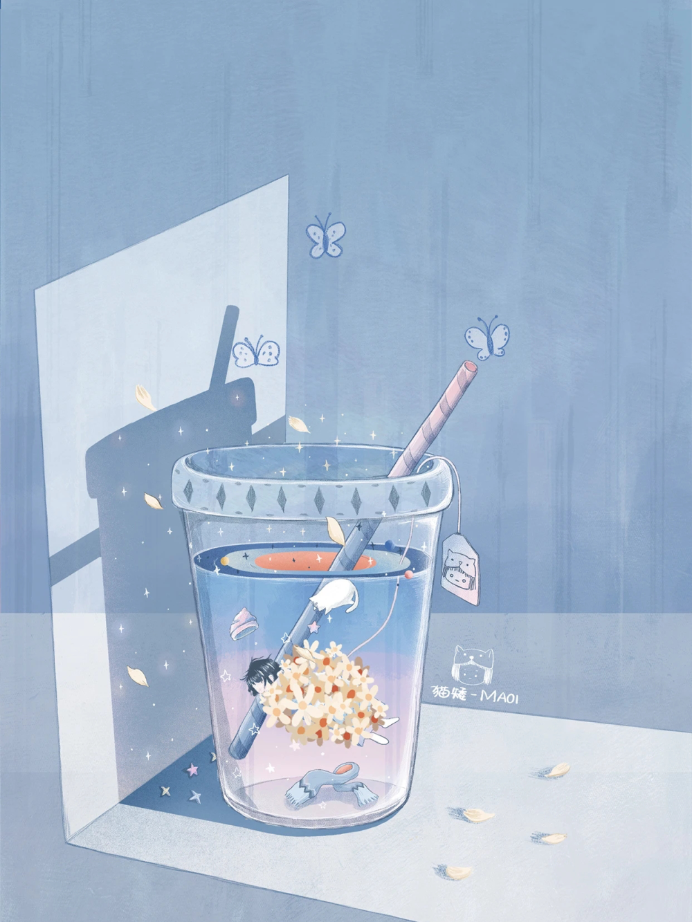 蓝色治愈系背景图源:猫矮-maoi - 堆糖,美图壁纸兴趣社区