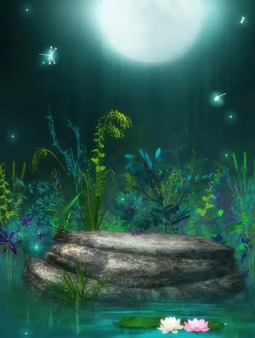 小清新夜晚月亮梦幻植物草地泡泡唯美手机壁纸