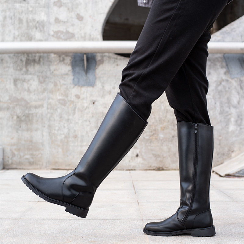 新款时尚骑马靴潮流男靴子高筒长靴军靴男皮靴仪仗队演出男马丁靴