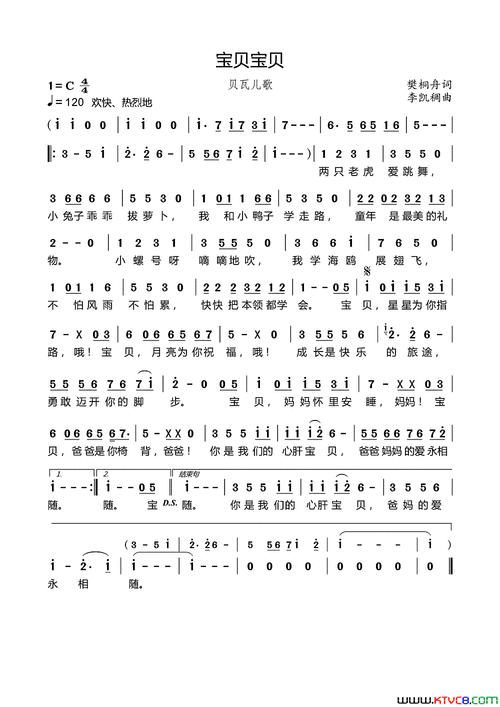 宝贝宝贝(贝瓦儿歌)简谱,作词樊桐舟,歌词,我爱歌谱网