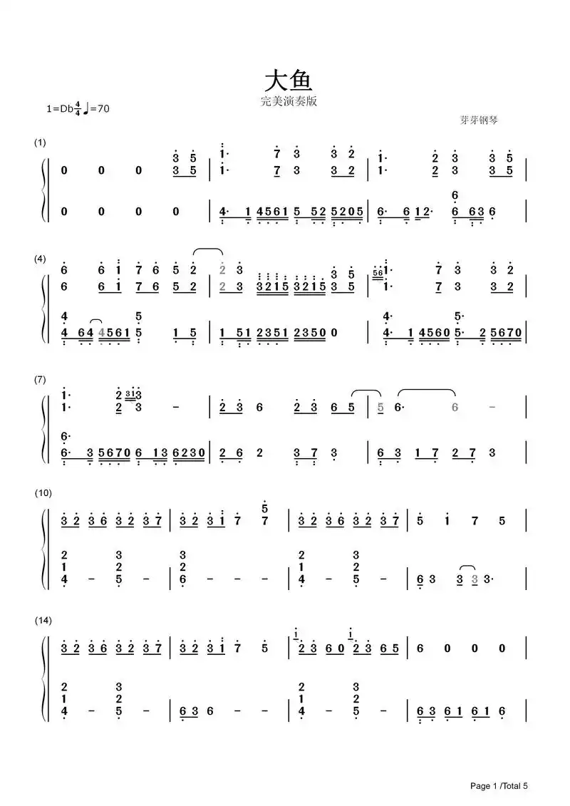 大鱼-完美版双手简谱预览2-钢琴谱文件(五线谱,双手简谱,数字谱,midi