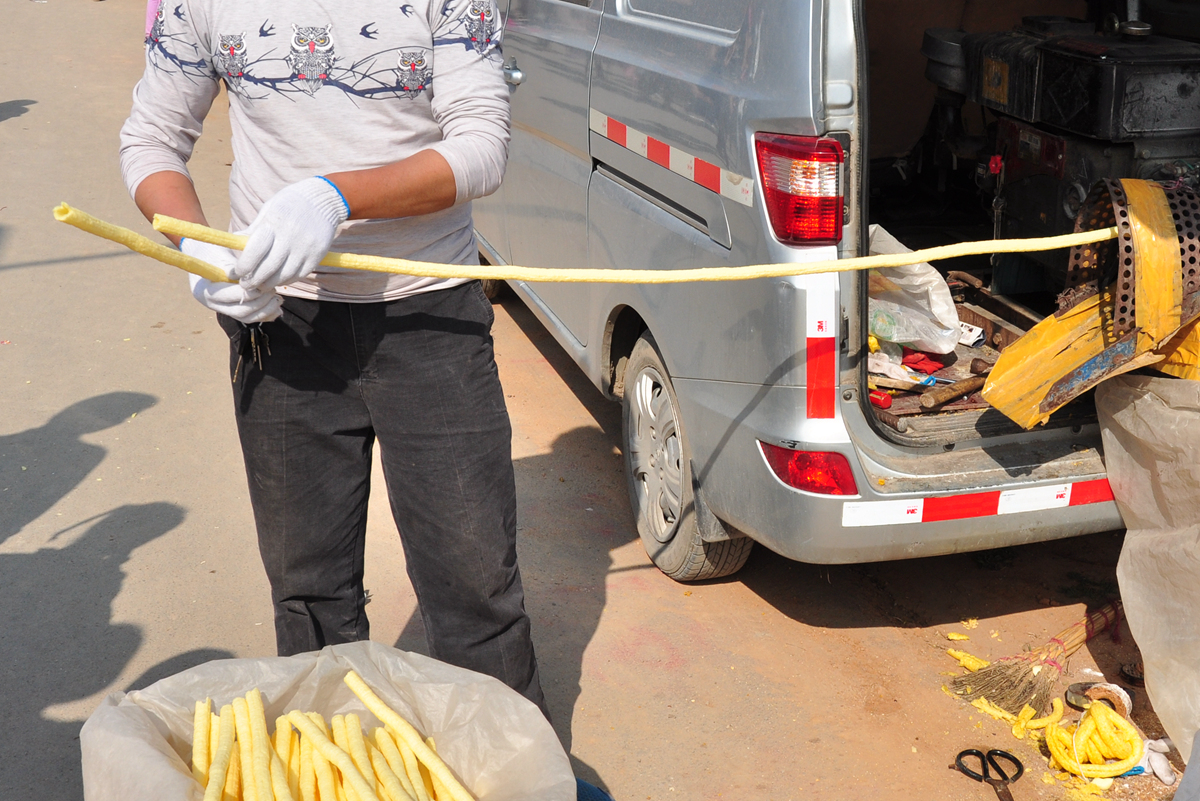 只能在农村大集上才能一见的长条爆米花是最火爆的美食之一
