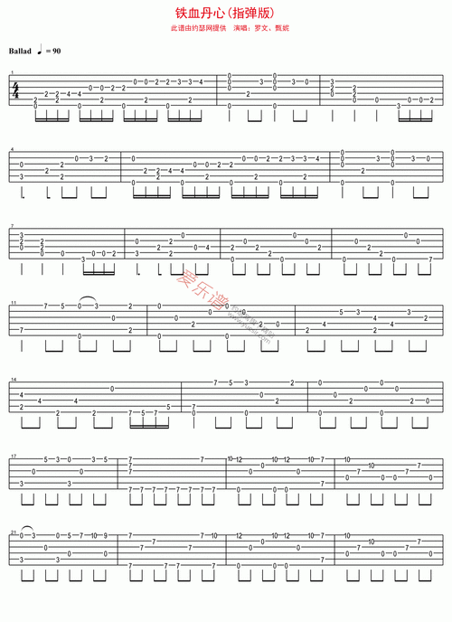 铁血丹心吉他谱-罗文,甄妮-指弹版高清六线谱图片谱