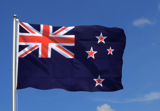 新西兰国旗孤立地飘扬在蓝色多云的天空中