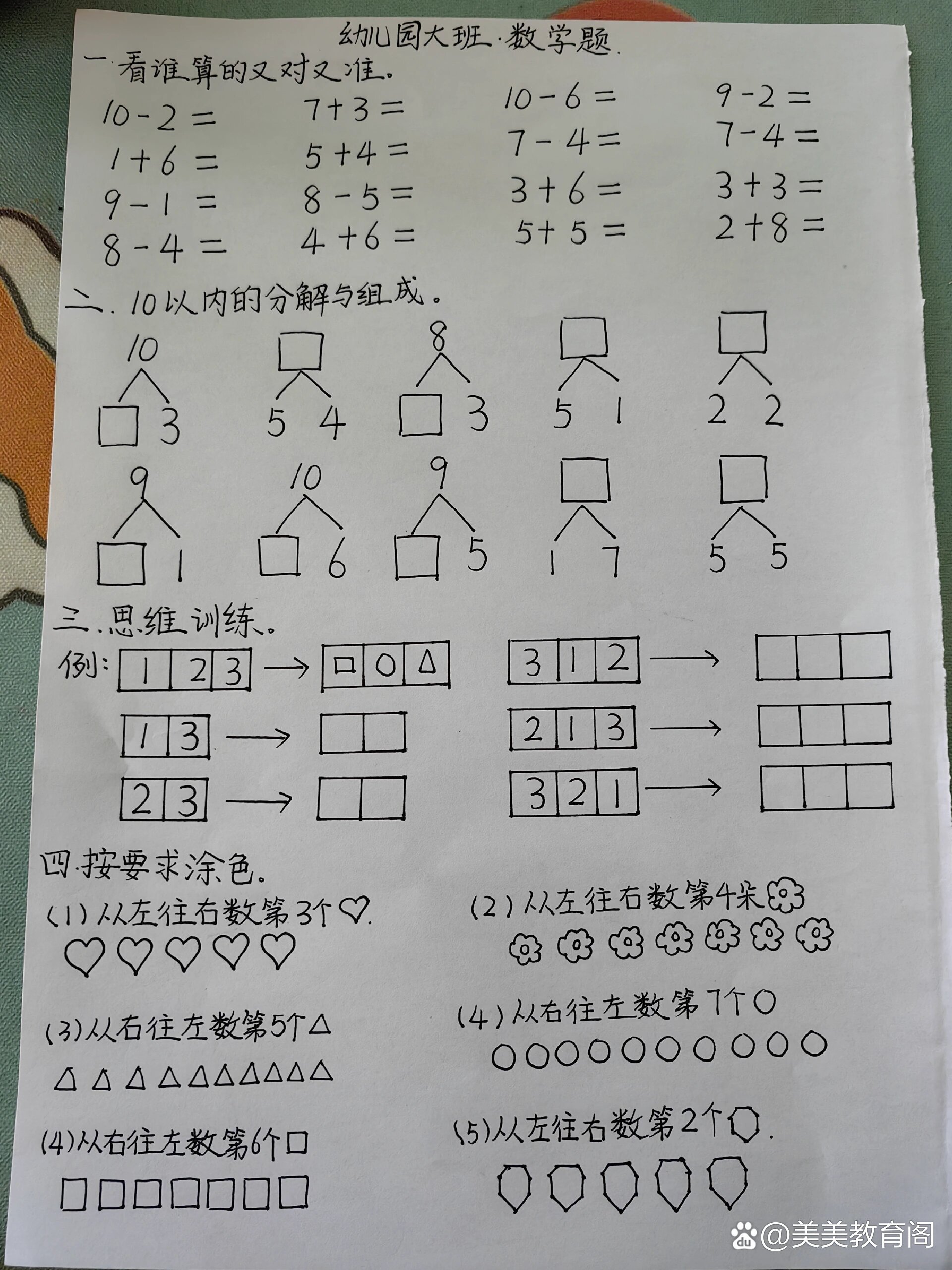 幼小衔接数学测试题,大班学前班学前测试卷 - 抖音
