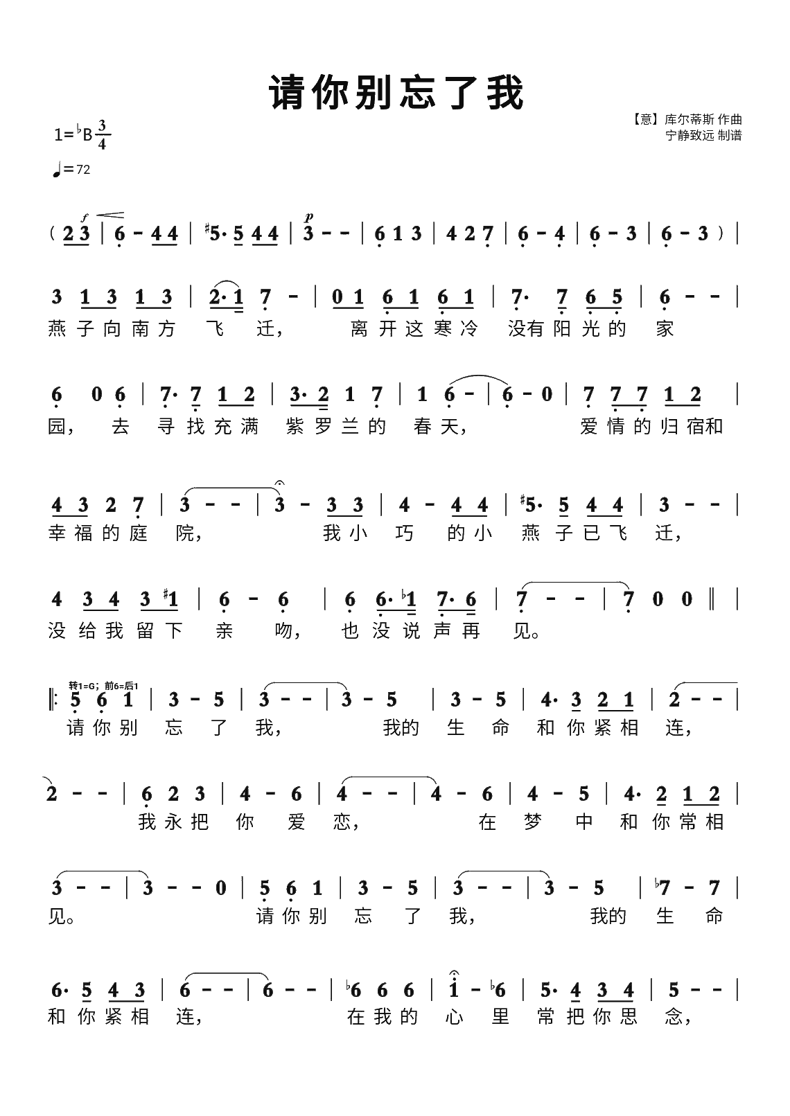 请你别忘了我简谱 -苍强曲谱