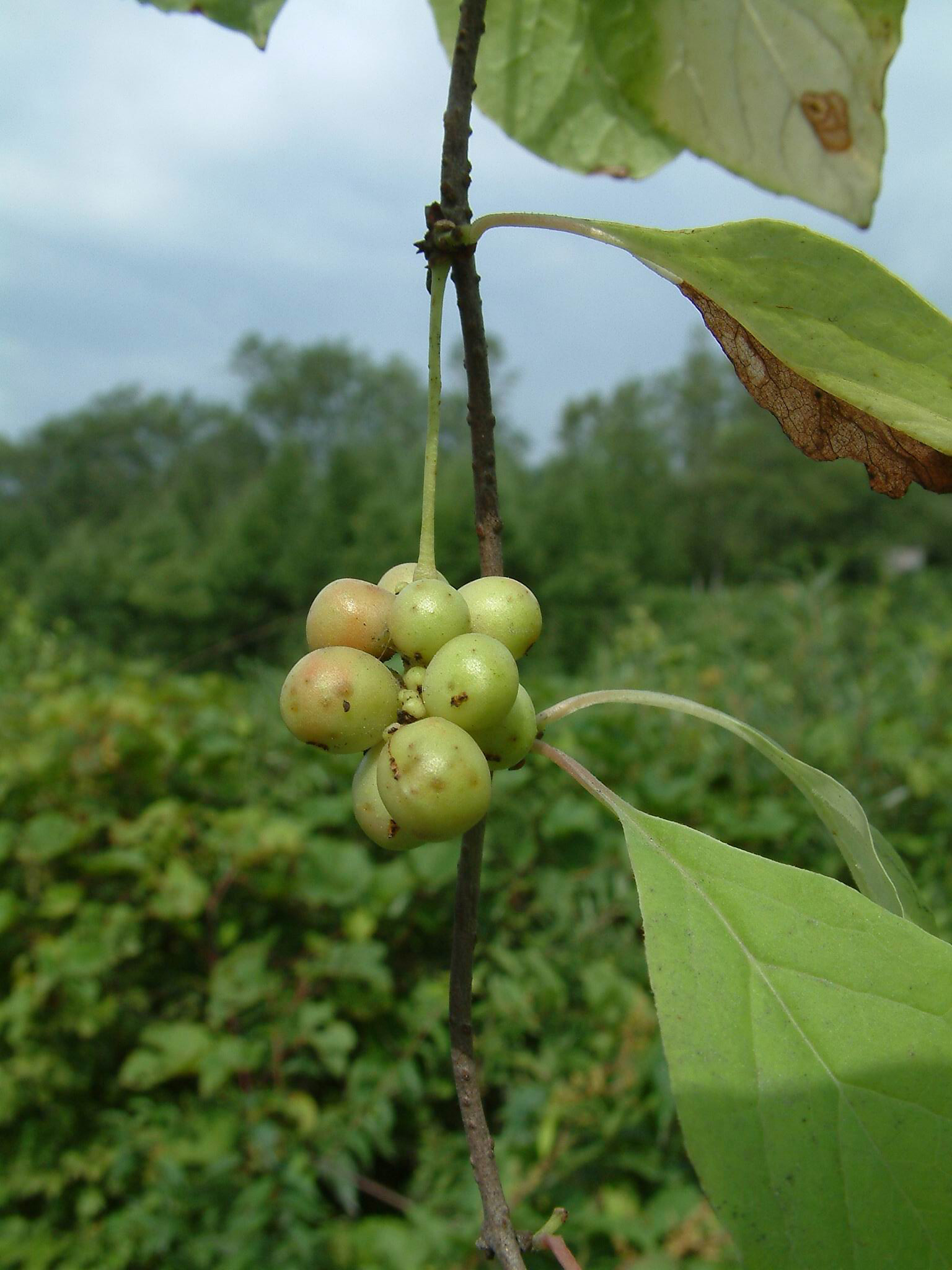 红五味子挂在绿树枝上.五味子植物, 枝上有水果.韩国五味子 omija照片