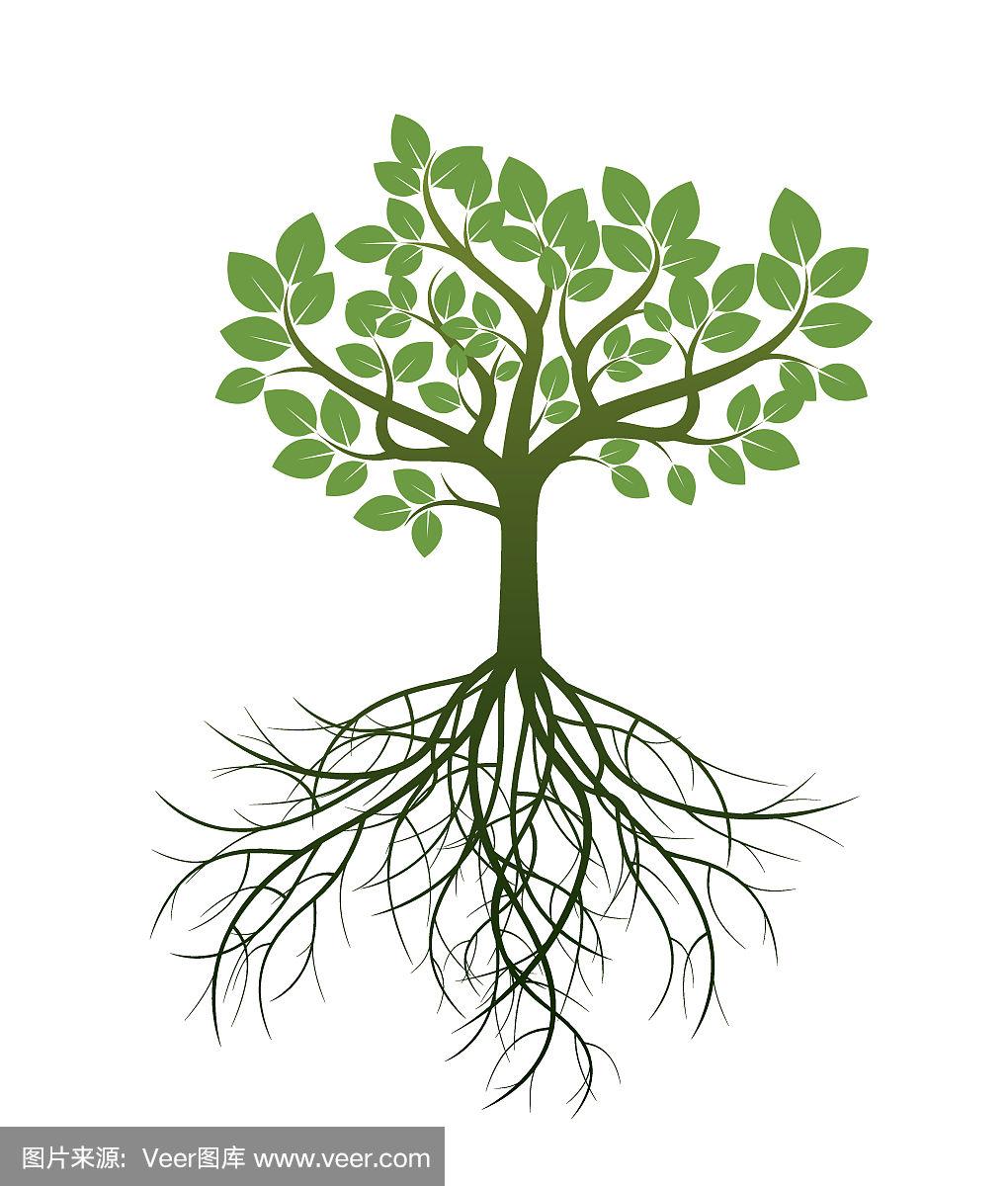 绿色大树和错综的树根png图片免抠eps矢量素材