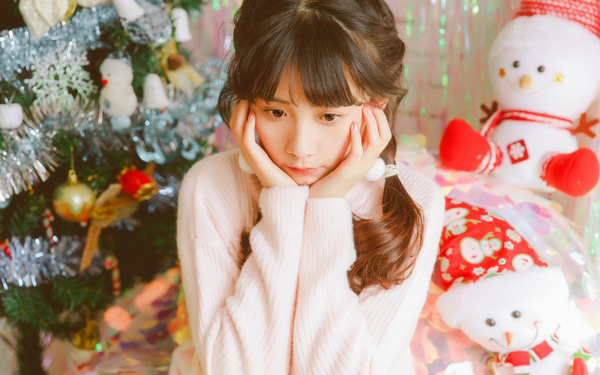 清新可爱美女圣诞节唯美图片高清桌面壁纸下载