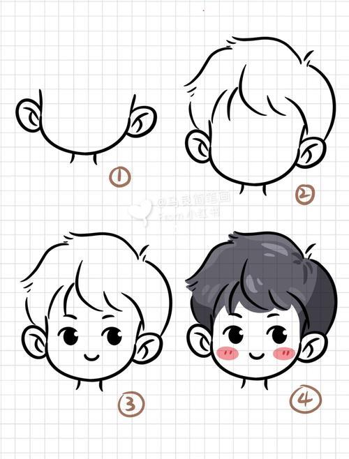 简笔画|q版男孩简笔画头像合集.#简笔画 #画画 #头像 # - 抖音