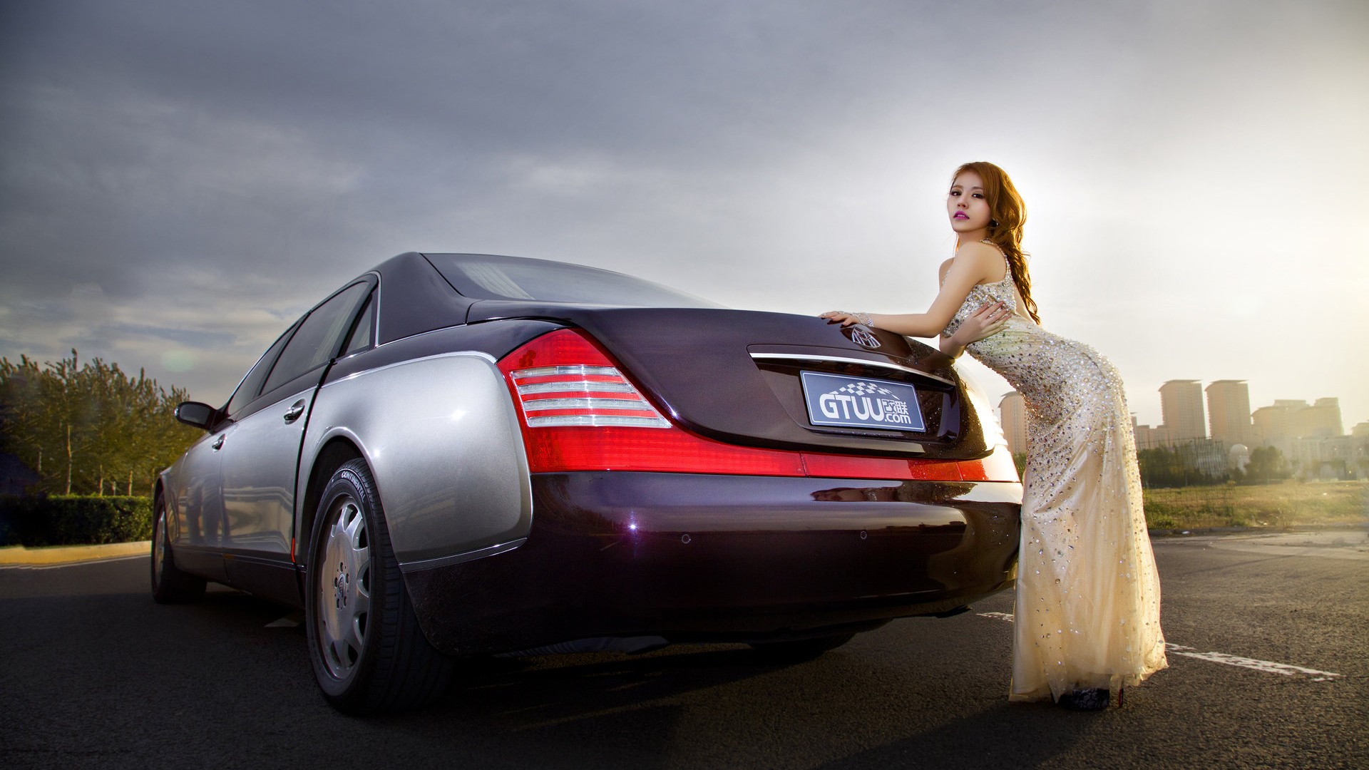名牌汽车迈巴赫与性感火辣的车模桌面壁纸高清