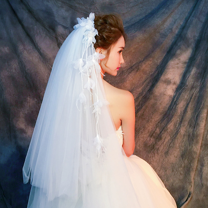 0成交0件新娘植绒头纱头饰网红拍照摄影旅拍韩版加密双层裸纱仙唯美女
