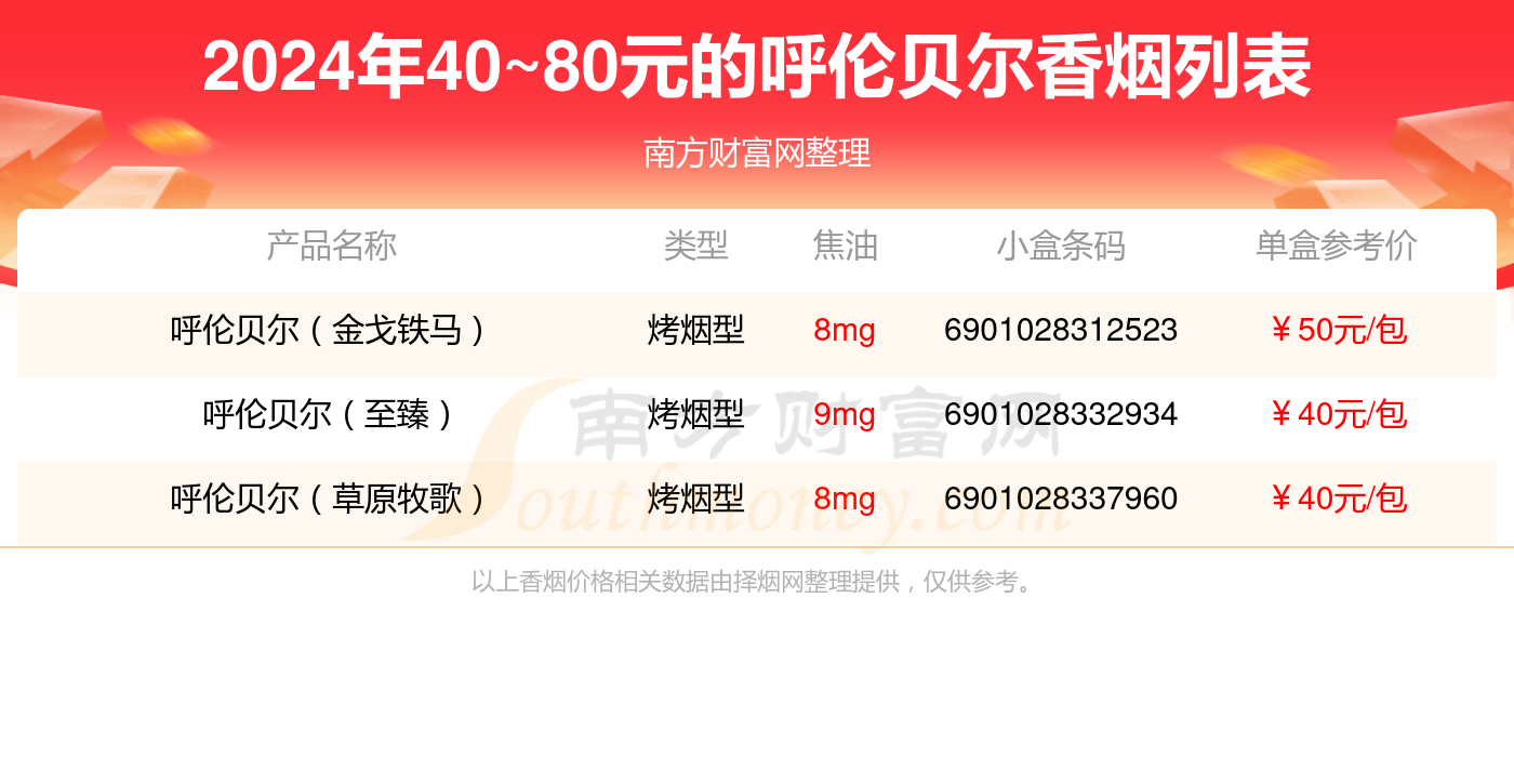 2024呼伦贝尔香烟20元到40元的烟一览表