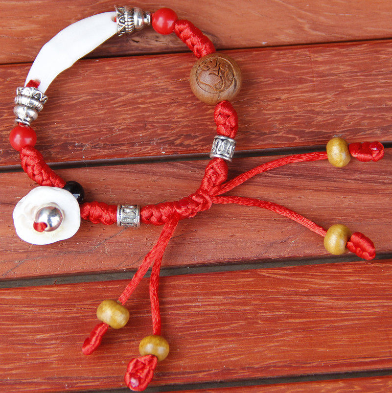 桃木雕刻生肖兔搭配狗牙红绳编织婴儿童成人男女手链脚链可定制