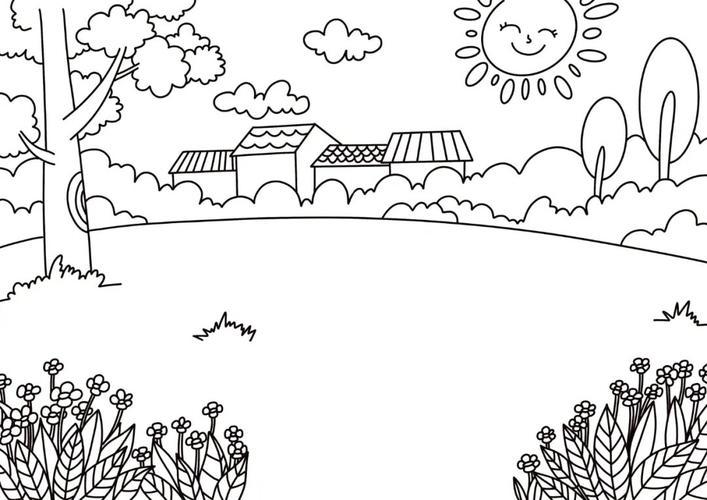 儿童简笔画动物组合小场景儿童画情景画填色线稿简笔画可以百情景简笔