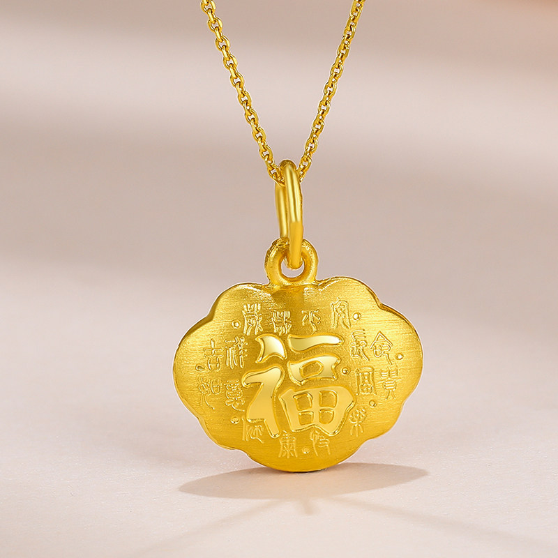 周六福黄金吊坠男女计价足金福字如意挂件宝宝周岁礼礼物
