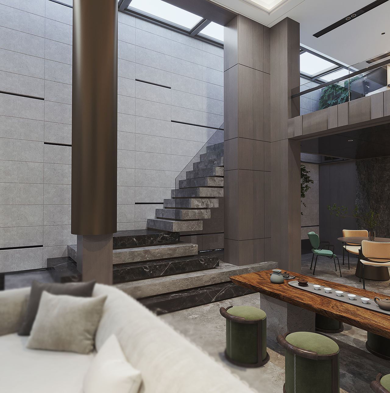 地下室挑空设计,使人在精神上感觉到舒缓,放松,有效地释放压力.