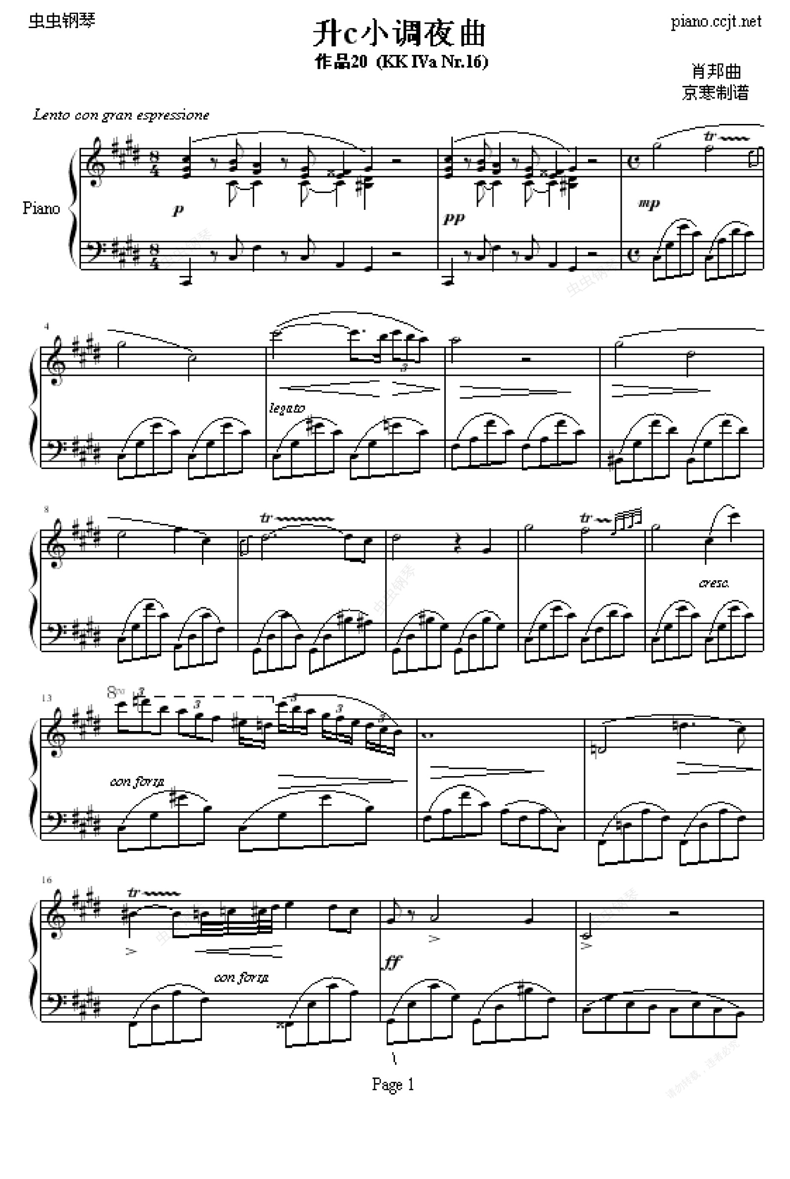 《升c小调夜曲,钢琴谱》肖邦-chopin|弹琴吧|钢琴谱|吉他谱|钢琴曲