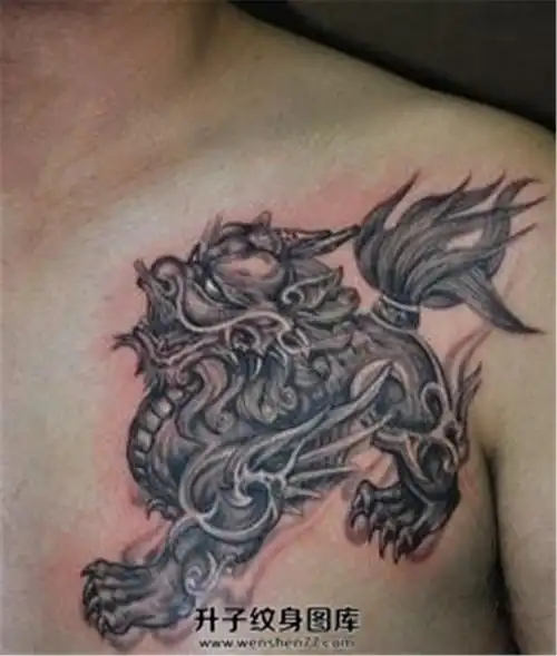 男性胸口黑灰貔貅纹身【升子纹身520】