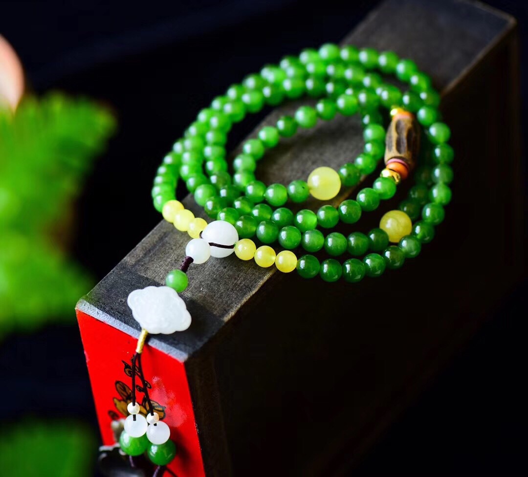 原创天然菠菜绿碧玉108颗佛珠手链6mm珠子清清爽爽的菠菜绿和田玉