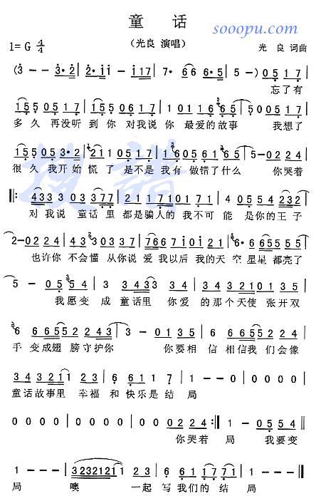 童话光良钢琴谱求翻译