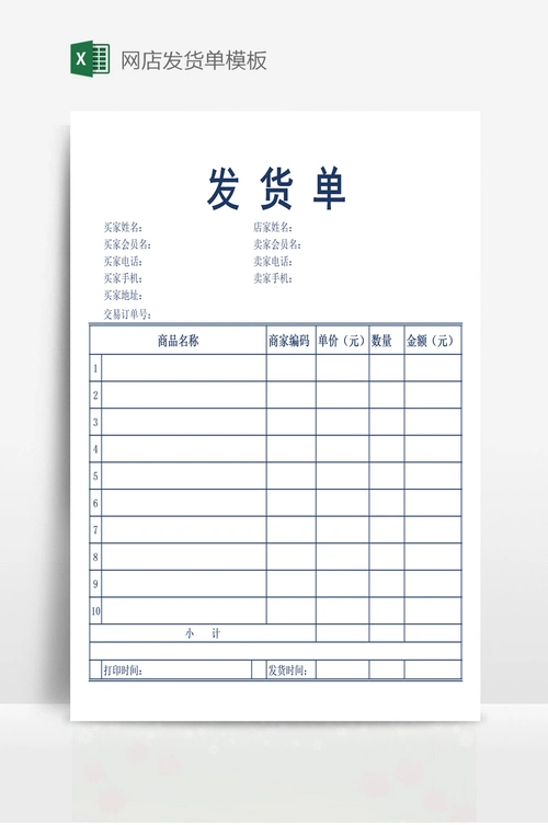 网店发货单模板