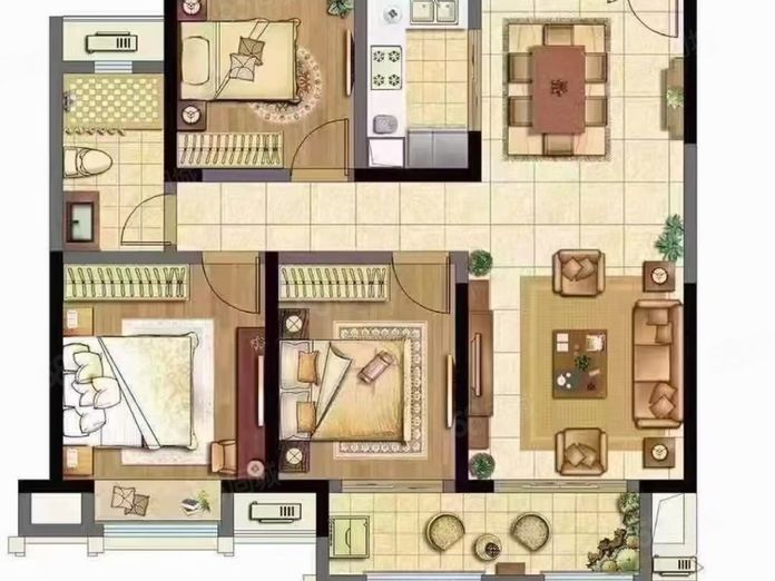 皇家水岸花园社区b2户型图 三房两厅一卫111-112平米