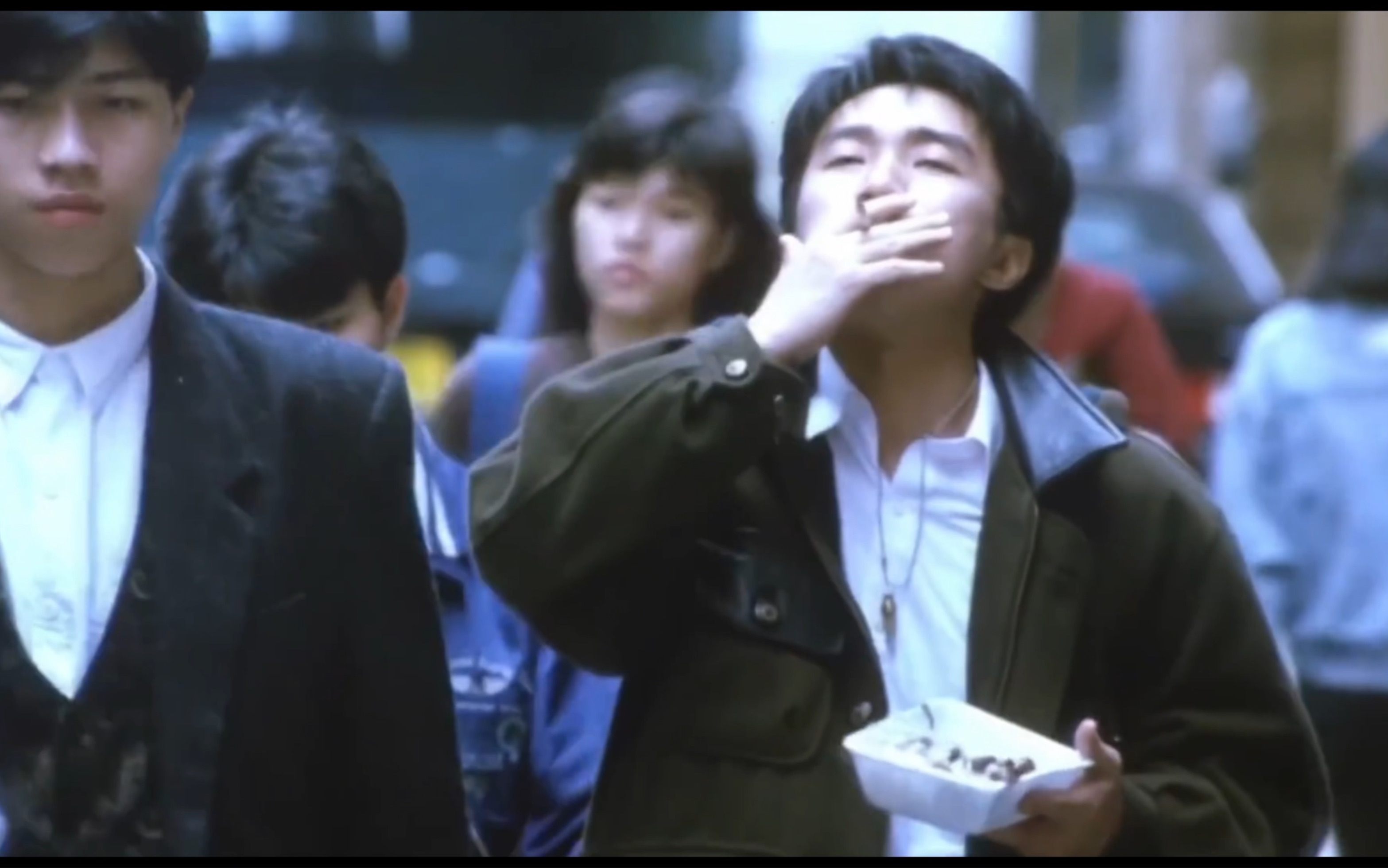 《咖喱辣椒》中周星驰边吃盒饭边抽烟,虽然很落魄但是却很嚣张.