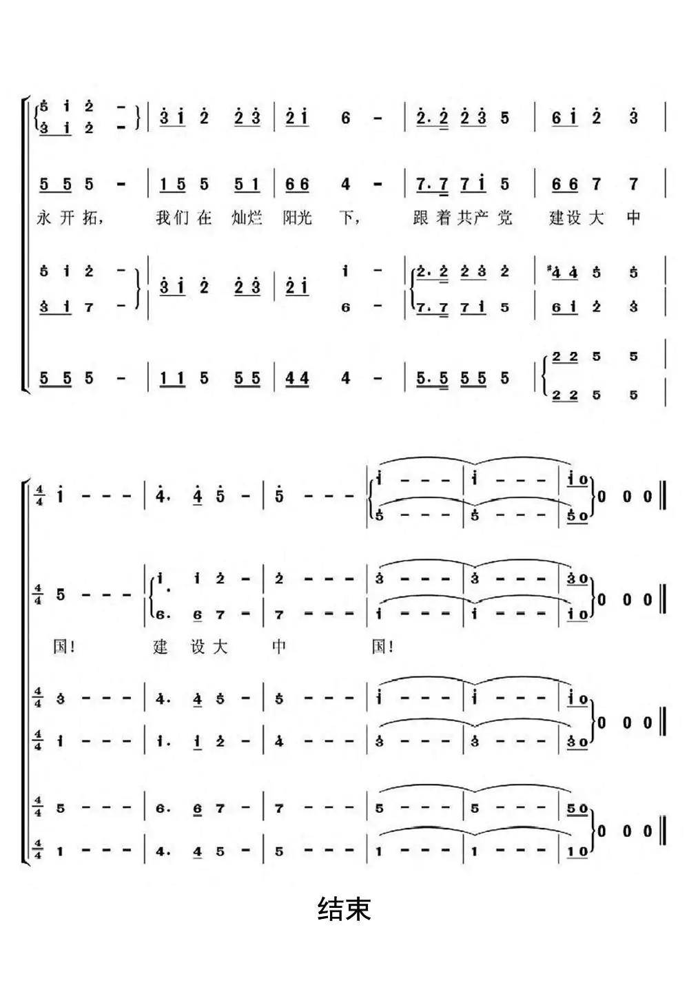在灿烂的阳光下-茹河之声二声部合唱简谱 - 曲谱歌词网