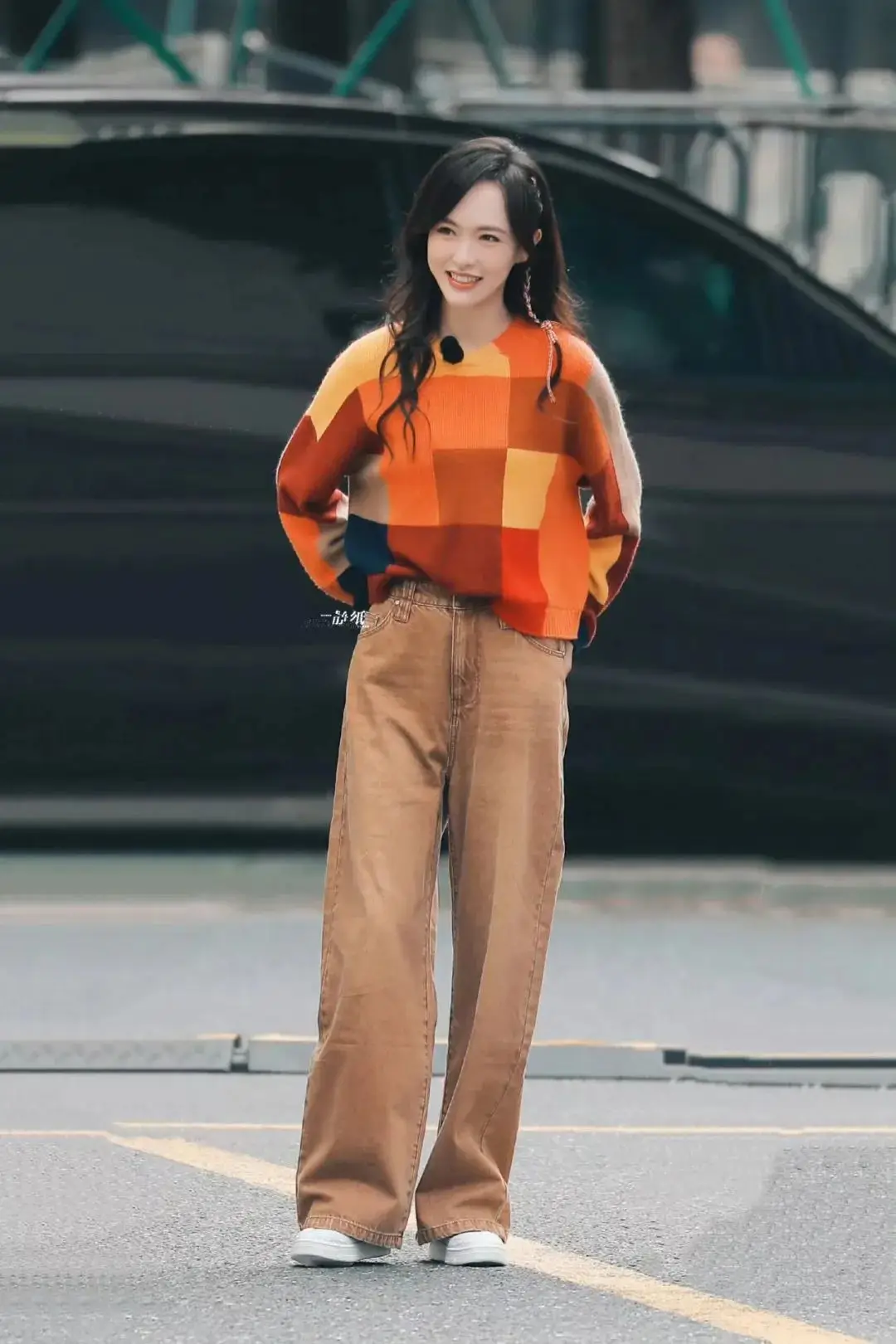 唐嫣又带火了一种新穿法宽松毛衣阔腿牛仔裤时髦洋气显腿长