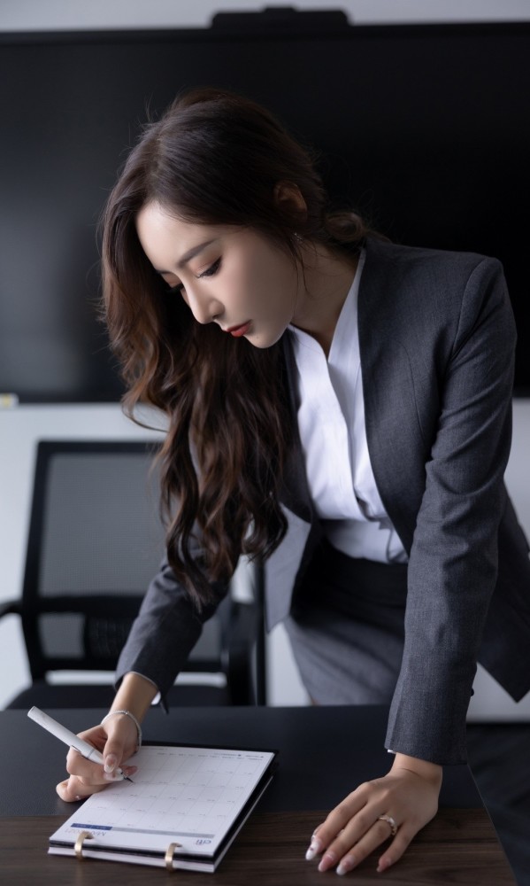 黑色制服魅力无限职场新风尚引遐想清雅丽人展风姿端庄气质难忘怀