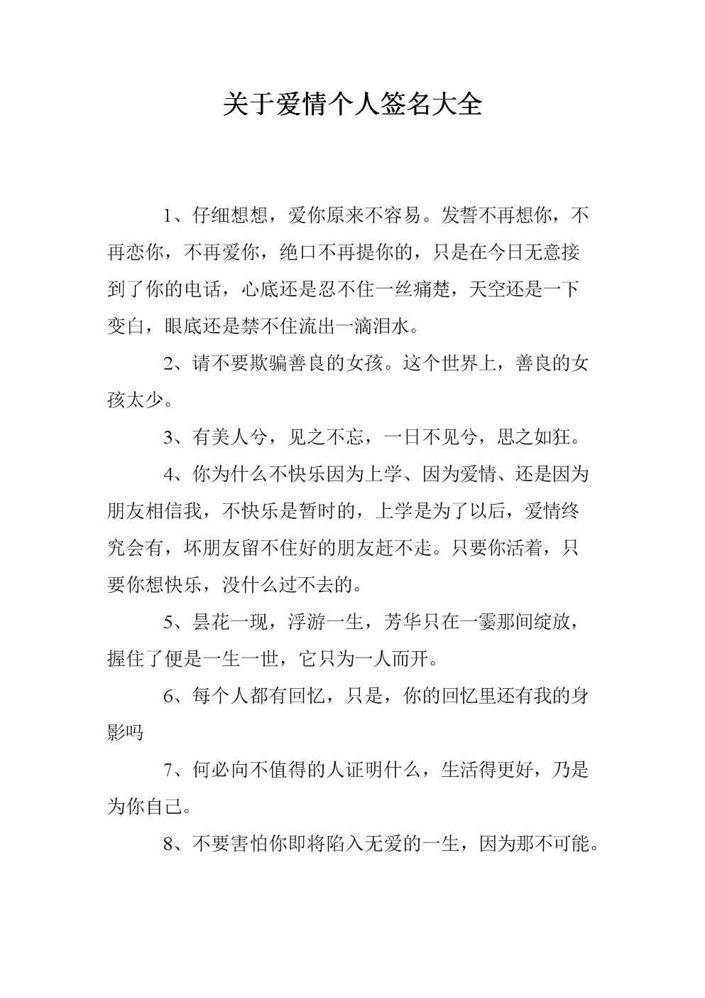 关于爱情个人签大全.doc 17页