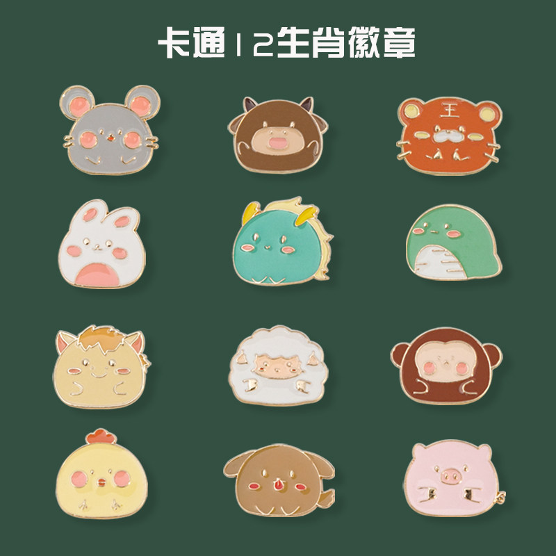 原创设计十二生肖萌版纪念徽章卡通动物简笔画风格合金胸针配饰