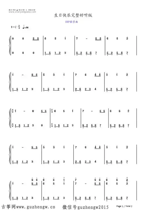 生日快乐完整好听版(简谱 需改编) - 简谱 - 古筝网