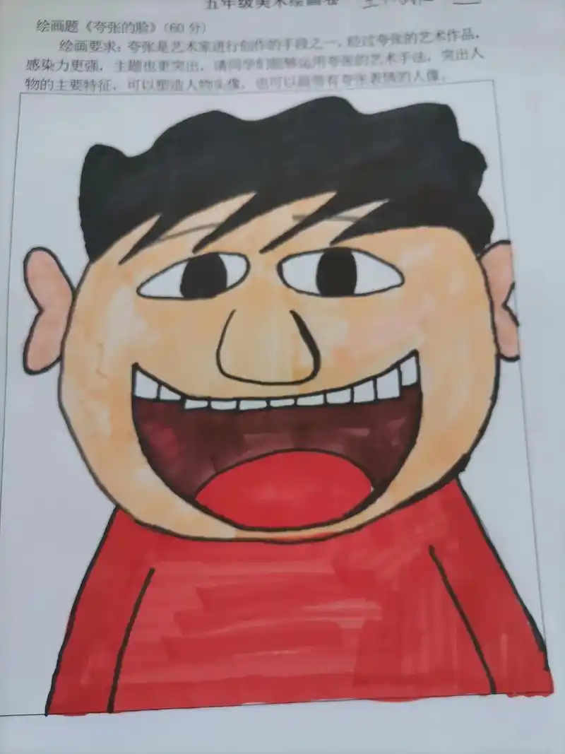 夸张的脸 #学生作品 #绘画日常 #五年级下册