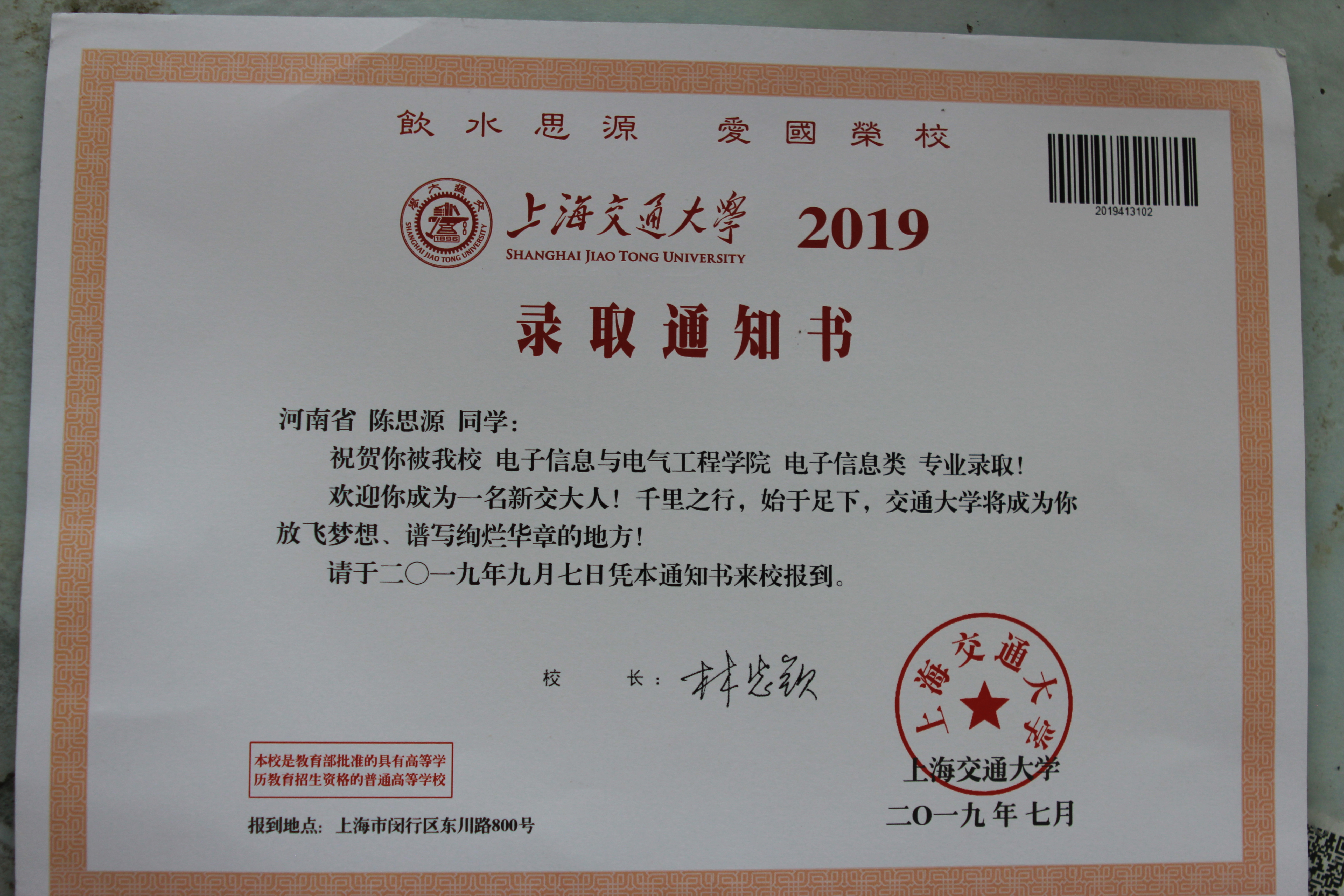 余爽的录取通知书"我的爷爷是一名军人,从小我就对从军入伍十分向往.